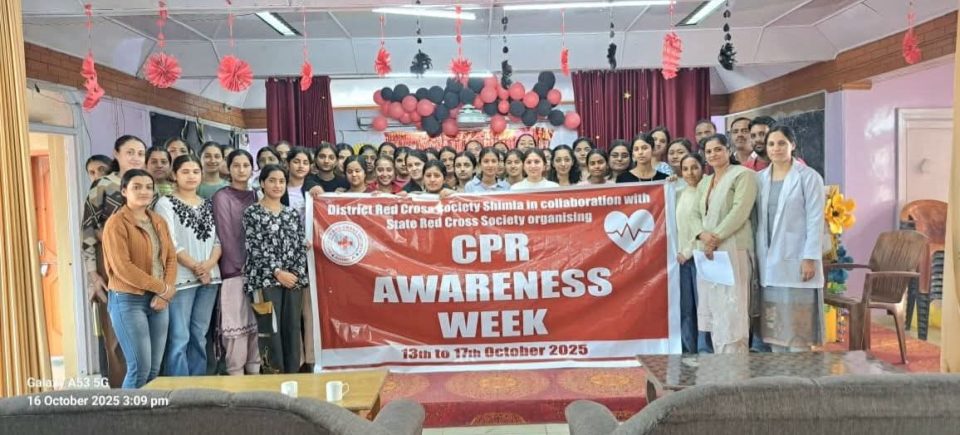 शिमला 16 अक्टूबर (RHNN) : देशभर में मनाए जा रहे सीपीआर जागरूकता सप्ताह के तहत गुरुवार को राज्य रेडक्रॉस शाखा और जिला रेडक्रॉस सोसायटी, शिमला के संयुक्त तत्वावधान में शिवालिक नर्सिंग संस्थान भटाकुफर में सीपीआर जागरूकता एवं प्रशिक्षण कार्यक्रम आयोजित किया गया। इस अवसर पर हिमाचल प्रदेश राज्य रेडक्रॉस के लेक्चरर वीरेंद्र बिष्ट ने छात्रों को सीपीआर तकनीक की विस्तृत जानकारी दी और व्यावहारिक प्रदर्शन भी किया। उन्होंने बताया कि हृदय गति रुकने, डूबने या अचेत हो जाने जैसी आकस्मिक परिस्थितियों में सीपीआर तकनीक जीवन रक्षक सिद्ध हो सकती है। कार्यक्रम में कुल 55 विद्यार्थियों को प्रशिक्षण दिया गया।