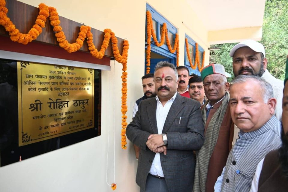 शिमला 22 अक्टूबर (RHNN) : शिक्षा मंत्री रोहित ठाकुर ने आज ग्राम पंचायत घुंडा भड़ेच और प्रगतिनगर में 3 करोड़ 26 लाख रुपये की लागत से निर्मित उठाऊ पेयजल योजना का उद्घाटन किया, जिससे घुंडा, जबड़ोग, चटोली, कोटी इत्यादि गांव के ग्रामीणो को लाभ होगा। उन्होंने बताया कि इसके अतिरिक्त क्षेत्र में 32 करोड़ 28 लाख रुपए की अन्य योजनाएं जल शक्ति विभाग में निर्माणाधीन है।