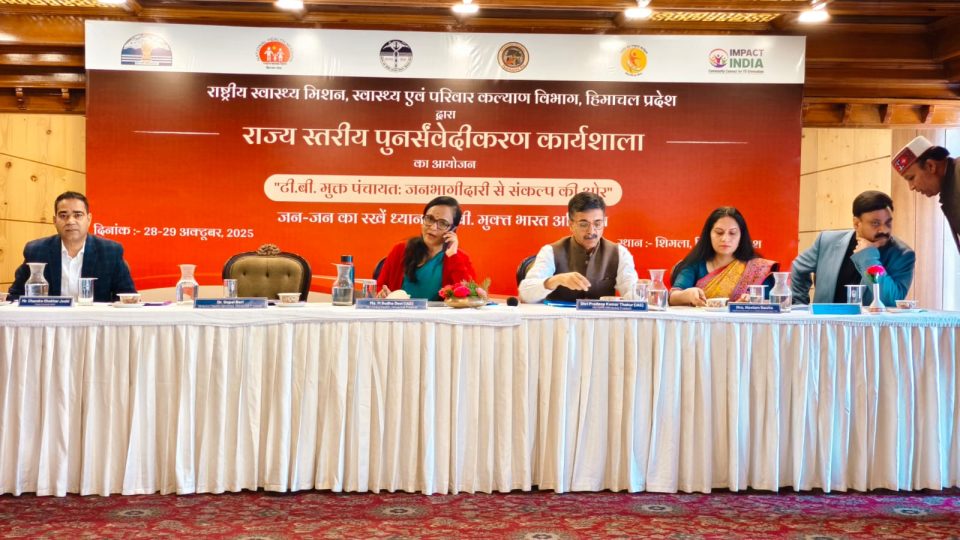 शिमला, 28 अक्टूबर (RHNN) : टीबी मुक्त भारत अभियान के अंतर्गत आज शिमला के होटल हॉलिडे होम में राज्य स्तरीय टीबी मुक्त पंचायत पुनर्संवेदीकरण कार्यशाला का आयोजन सचिव (स्वास्थ्य) हिमाचल प्रदेश सरकार सुश्री एम. सुधा देवी (IAS) की अध्यक्षता में किया गया। इस