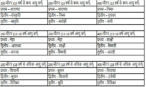 प्रतियोगिता के परिणाम इस प्रकार रहे —