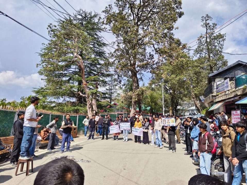 शिमला, 23 मार्च 26 (RHNN) : शहीदी दिवस के अवसर पर स्टूडेंट्स फेडरेशन ऑफ इंडिया (एसएफआई) की हिमाचल प्रदेश विश्वविद्यालय इकाई ने सोमवार को परिसर में विरोध प्रदर्शन किया। इस दौरान छात्रों ने शहीद भगत सिंह, सुखदेव और राजगुरु को श्रद्धांजलि अर्पित करते हुए कथित साम्राज्यवादी नीतियों के विरोध में अमेरिका के पूर्व राष्ट्रपति डोनाल्ड ट्रंप, इजरायल के प्रधानमंत्री बेंजामिन नेतन्याहू और भारत के प्रधानमंत्री नरेंद्र मोदी के पुतले फूंके।