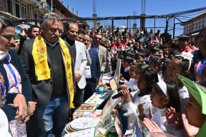 शिक्षा मंत्री ने पुस्तकालय में किताबों के लिए राशि और स्कूल के लिए डेस्क उपलब्ध करवाने की घोषणा की।